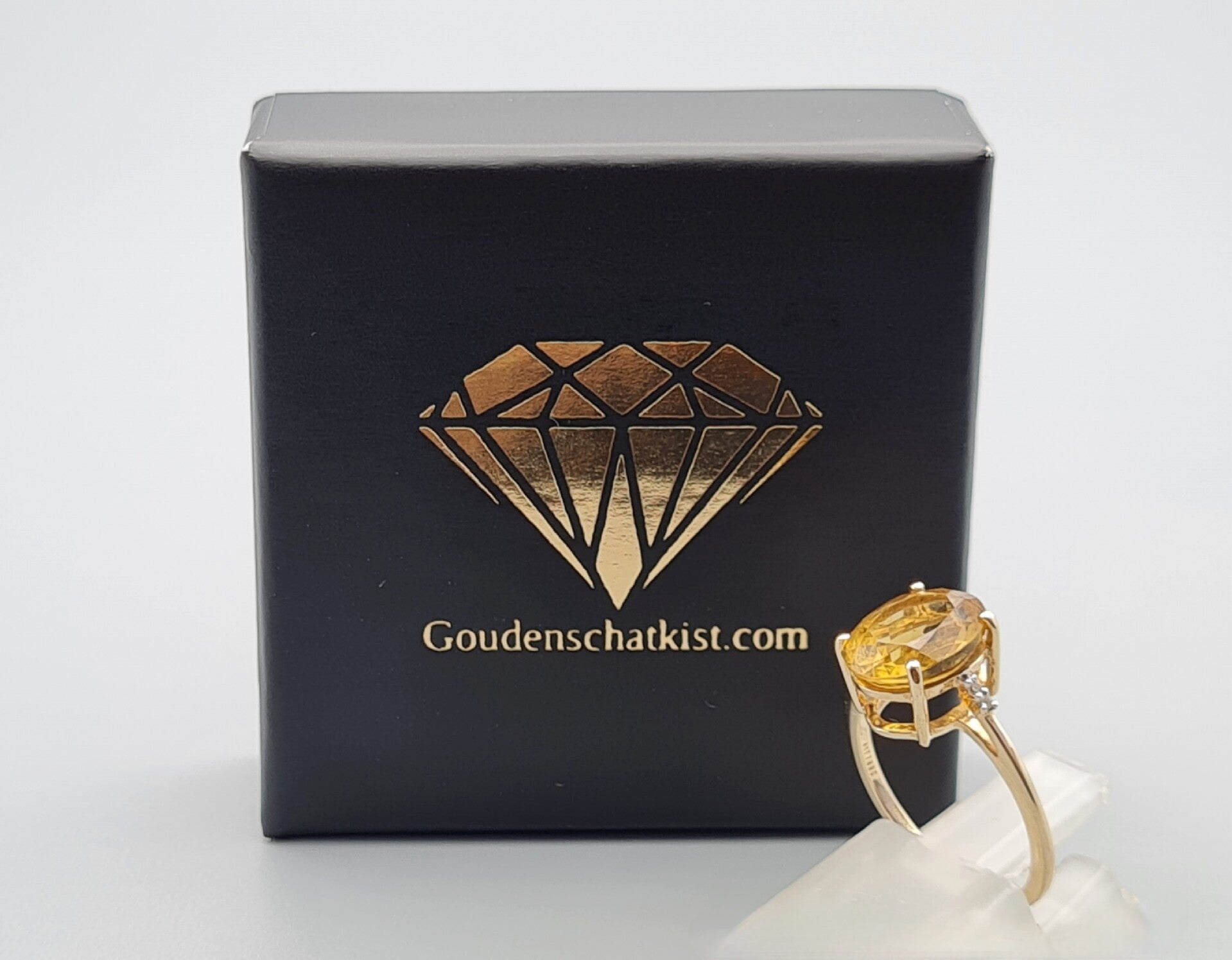 Vintage ring met edelsteen citrien en diamant. 2022/1009