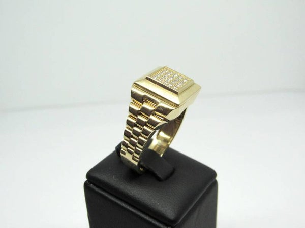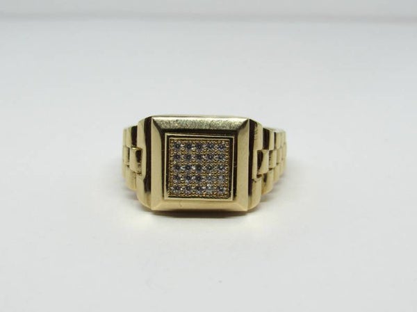 14 Karaat. Gouden herenring briljant geslepen zirkonia. Maat: 21. Nr: 19/A384.