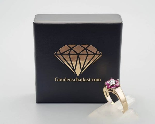 Vintage ring met edelsteen robijn en diamant. 2023/25