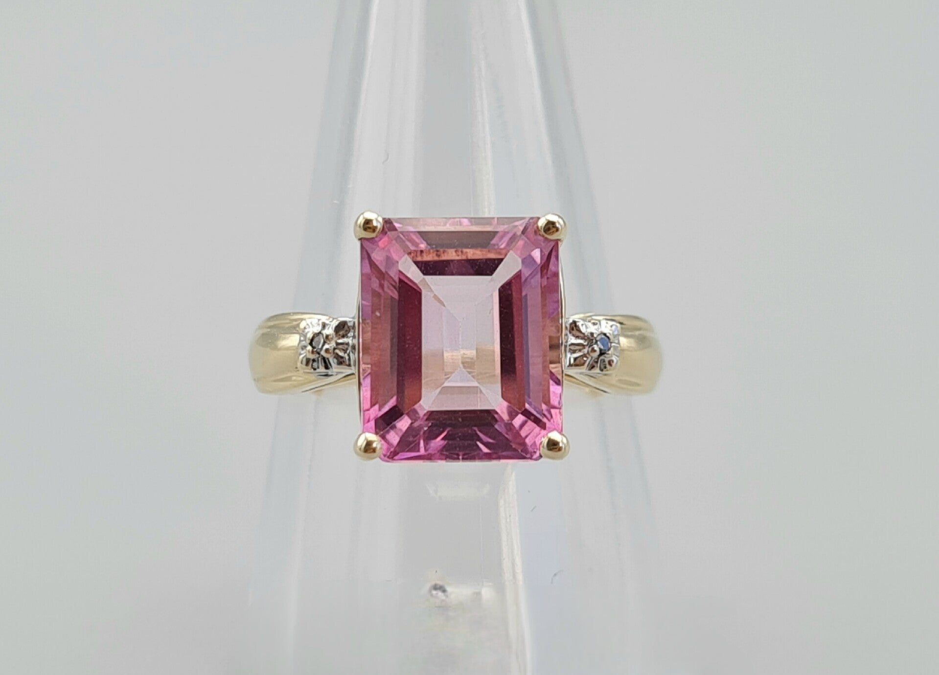 Vintage ring met roze saffier en diamant. Maat: 19.25. 2023/29