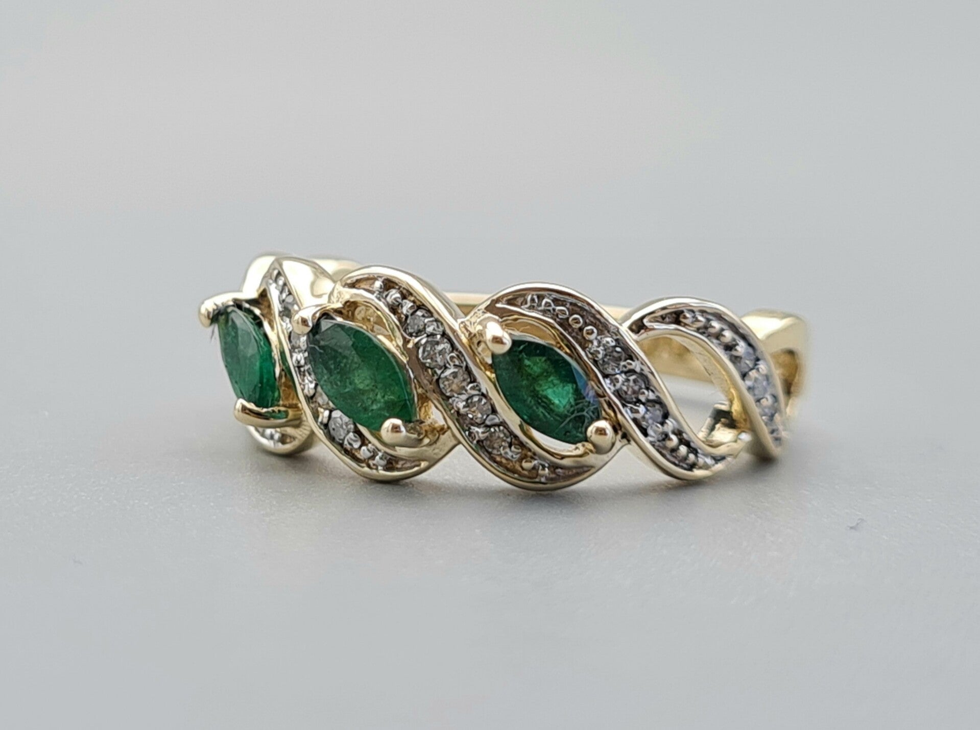 Vintage ring met smaragd en diamant. Maat:16.1. 2023/234.