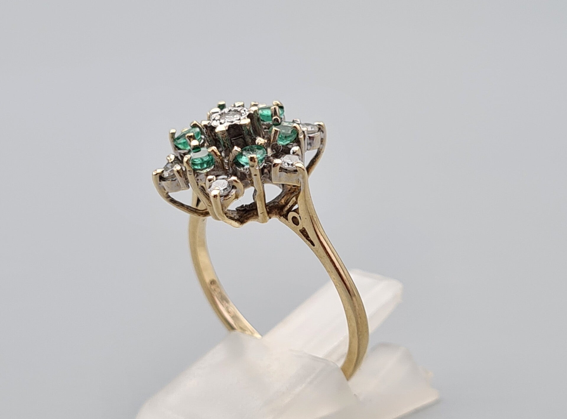 Vintage ring met edelsteen smaragd en diamant. Maat: 17.25. 2023/96.