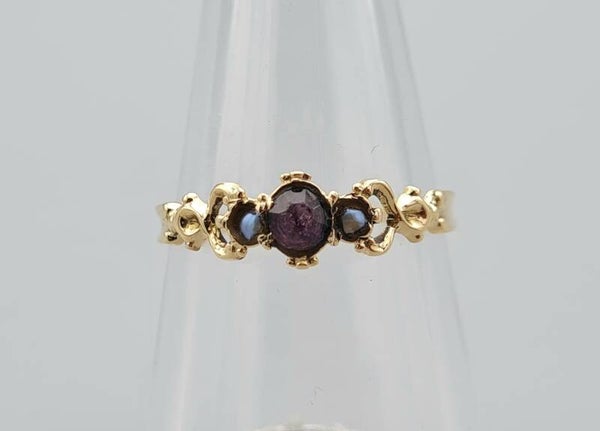 Vintage ring met amethist en zaadparel. Maat: 18.1. 2023/112.