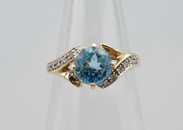 Vintage ring met edelsteen topaas en diamant. 2023/149.